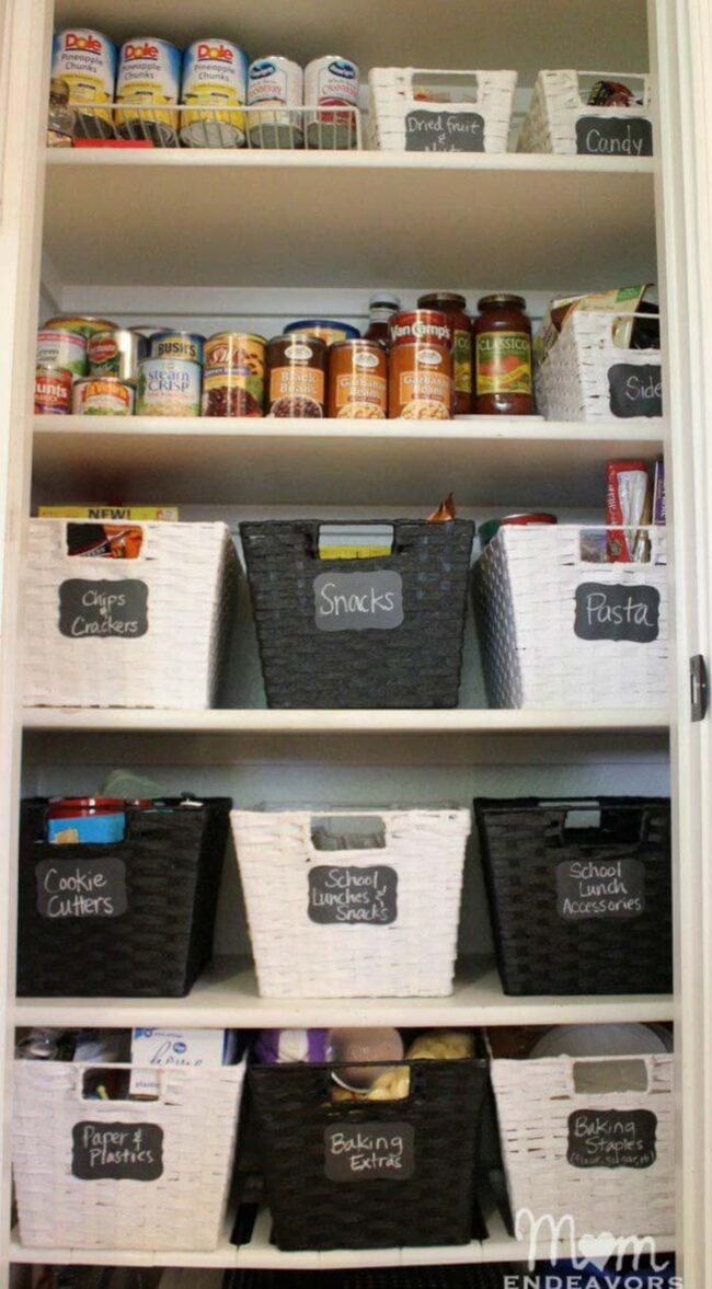 Color-coded sections can help separate baking, cooking, and snack categories for ultimate efficiency.