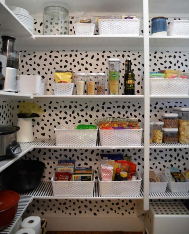 Pantry design with black and white tones creates a dramatic visual statement that instantly upgrades kitchen organization.