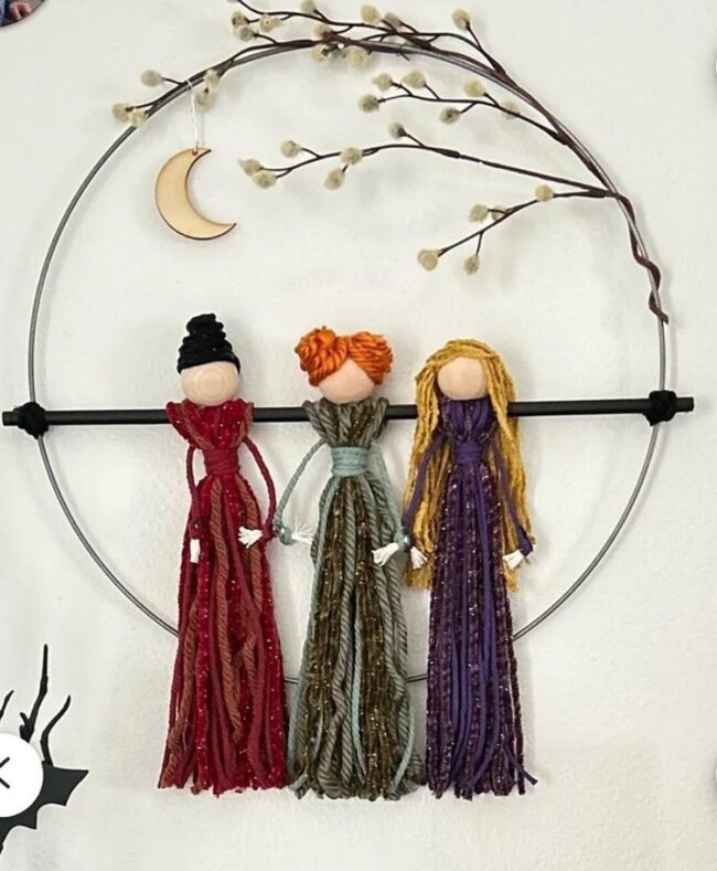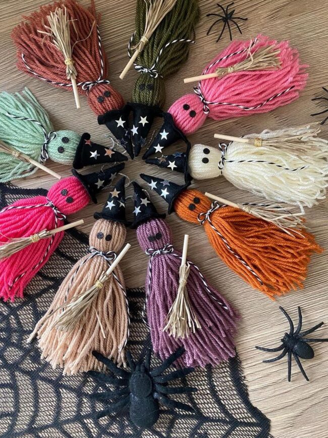 Halloween decor gets magical with yarn witches that spark joy and curiosity.