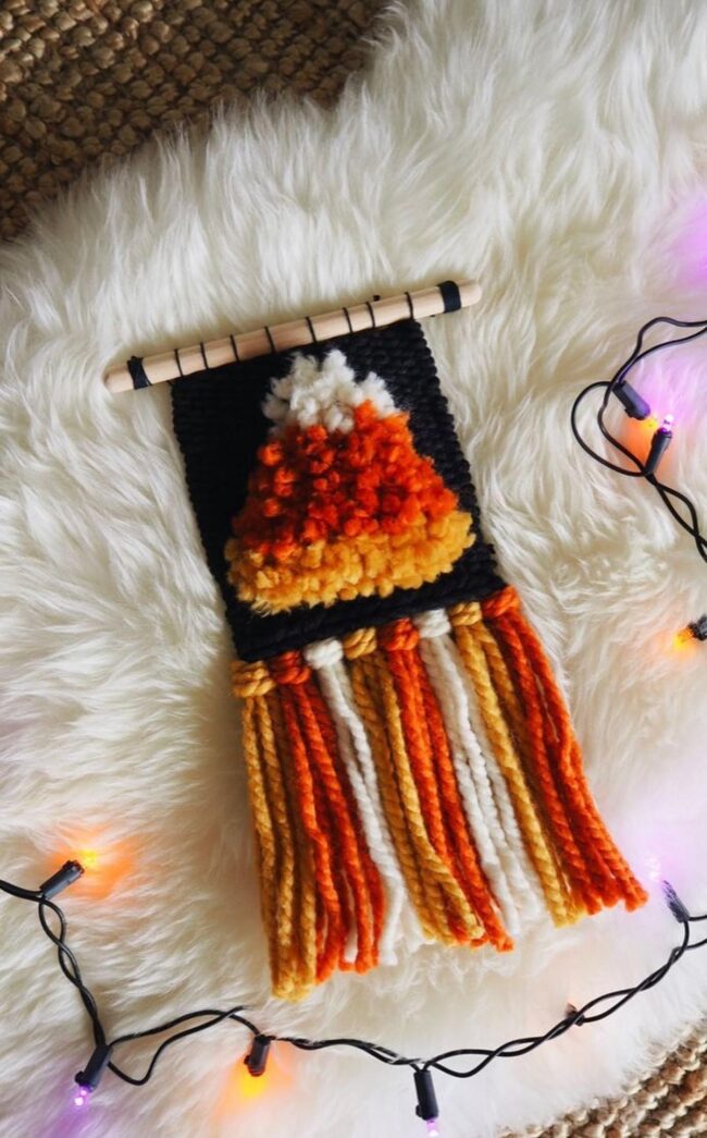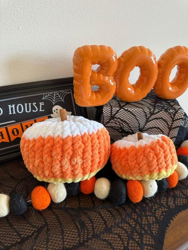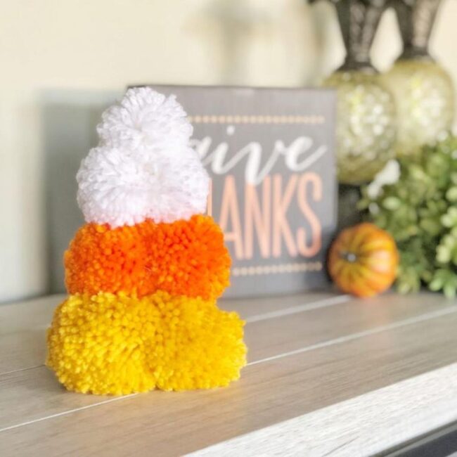 Soft yarn crafts like candy corn add whimsical character that catches everyone's eye and sparks conversation.