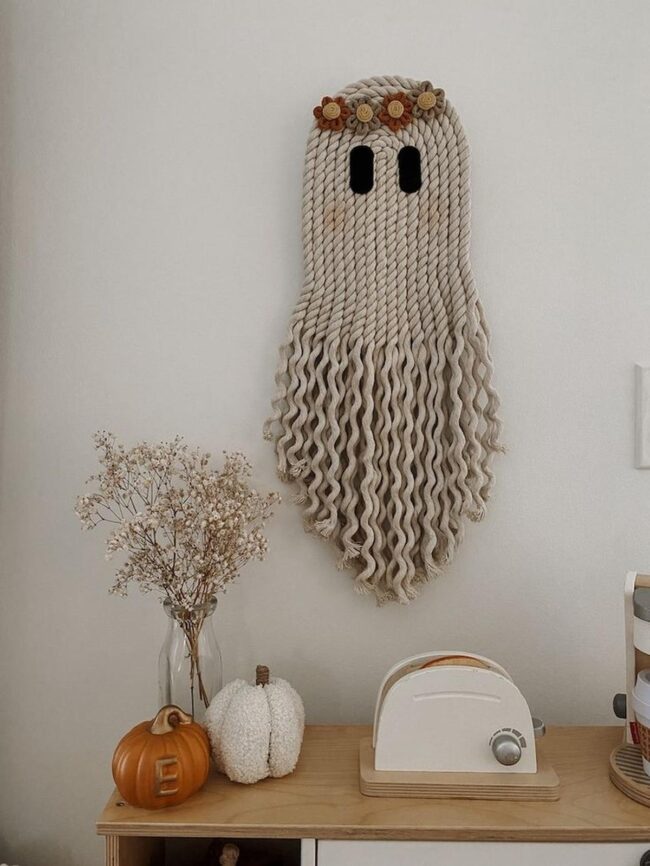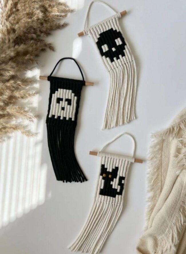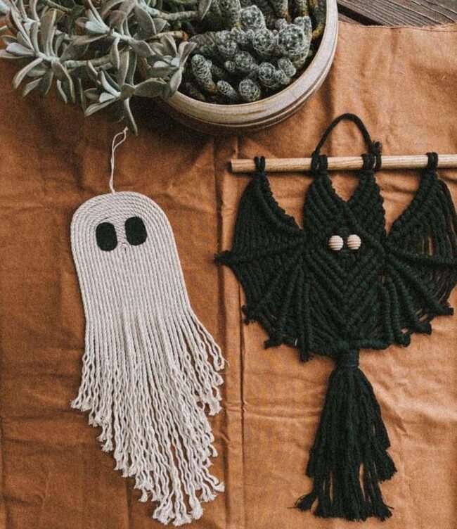Macramé wall hangings burst with personality, weaving Halloween magic into your home's design landscape.