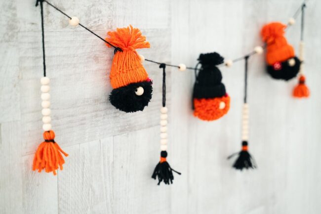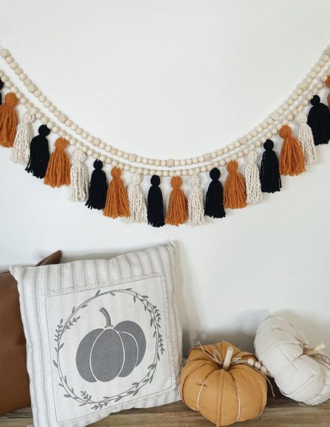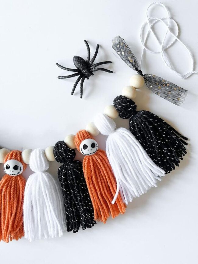Halloween decorations burst with personality when you weave together unexpected elements like soft yarn tassels and quirky wooden beads.