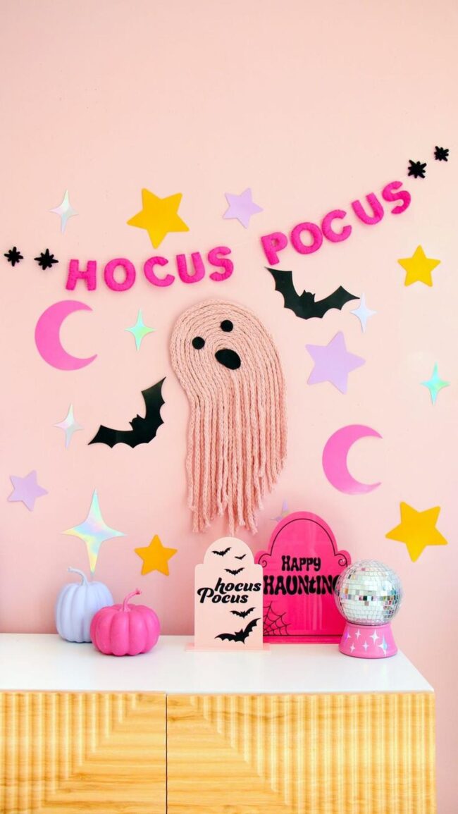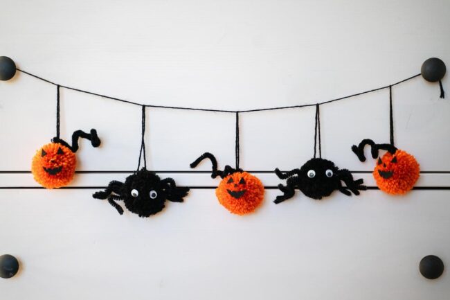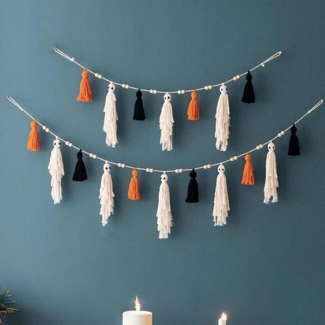 Crafty spiders sporting googly eyes and grinning pumpkins dangling from delicate strings will make your walls come alive with festive energy.