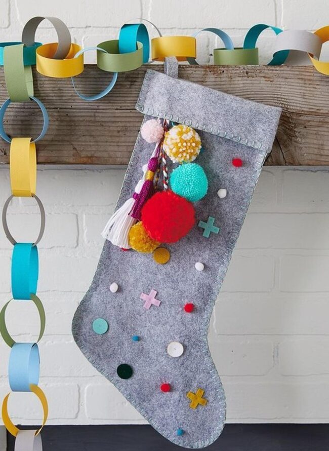 Playful pom-poms dangling from edges add whimsical personality, making these stockings more than just decorations but genuine expressions of creativity and holiday spirit.