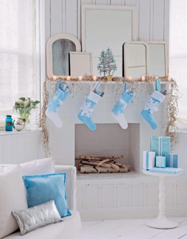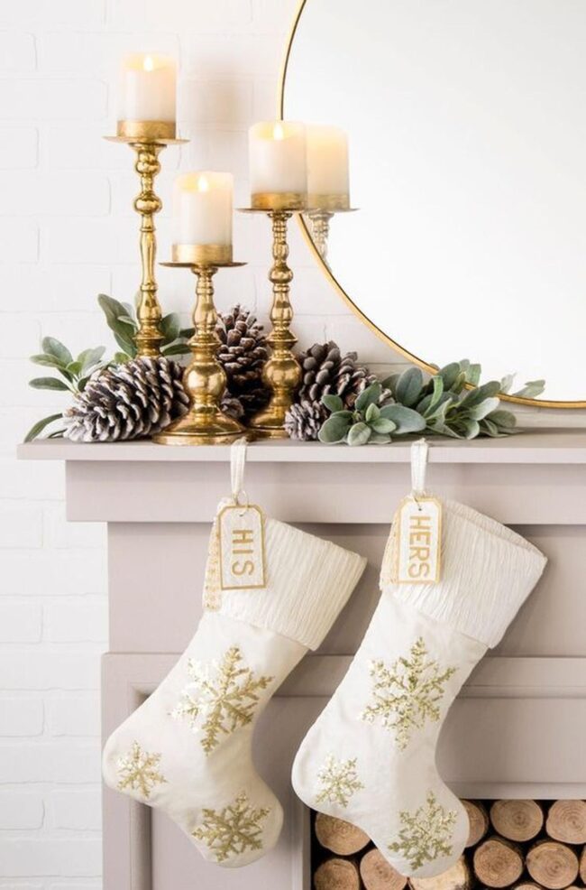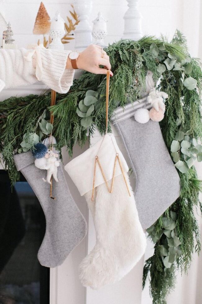 Your living space will radiate understated holiday cheer with these elegant stocking displays that celebrate winter's quiet beauty.