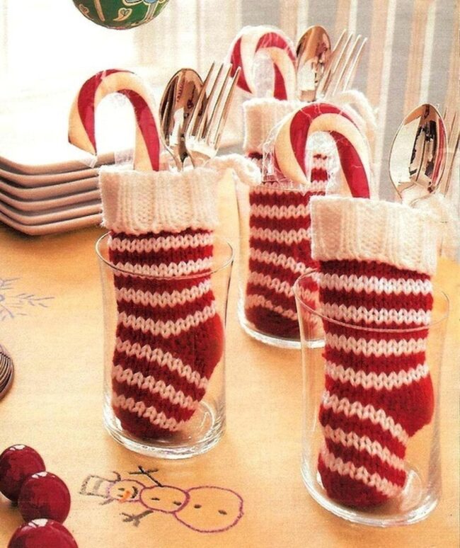 Holiday magic bursts from handmade knitted stockings that sparkle with unexpected charm, drawing your eye instantly with their soft yarn and twinkling lights woven through delicate loops.