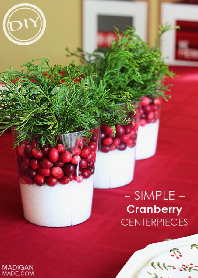 Cranberries work wonderfully in various projects because they hold their color well and pair beautifully with greenery, candles, and other seasonal elements.