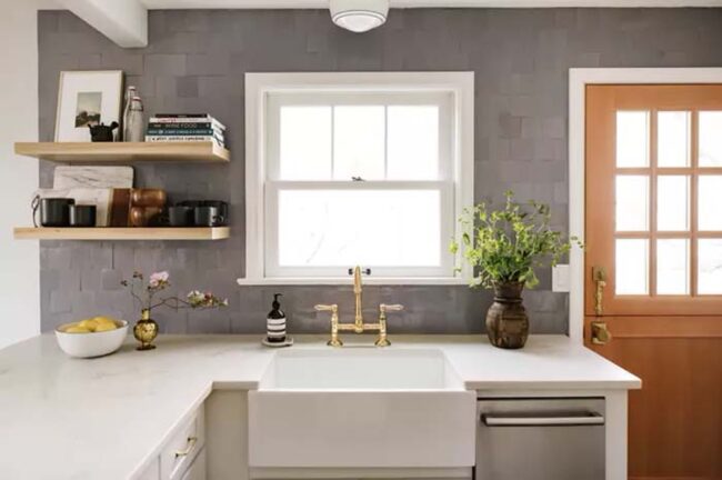 Concrete tile backsplashes elevate kitchen design with their unparalleled artistic charm and textured patterns that capture immediate attention.