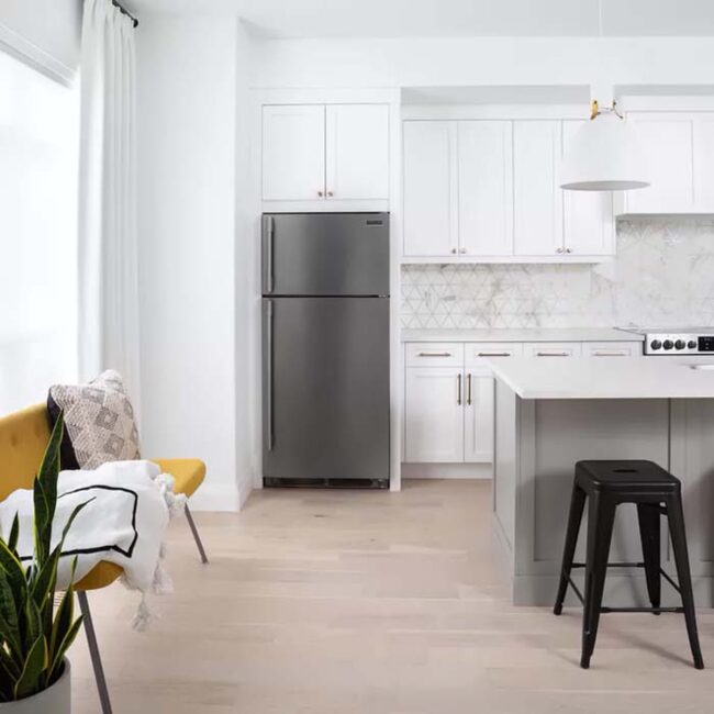 Monochromatic color choices ensure the space feels cohesive and intentional, transforming an ordinary cooking area into a stylish focal point.