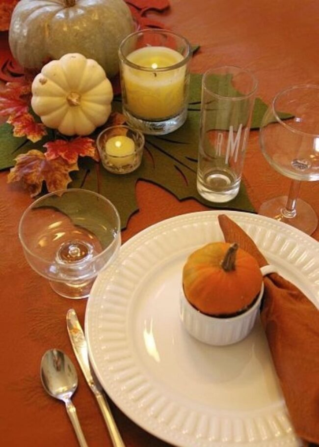Delicate pumpkins perched atop white plates add charming seasonal touches that spark conversation and delight.