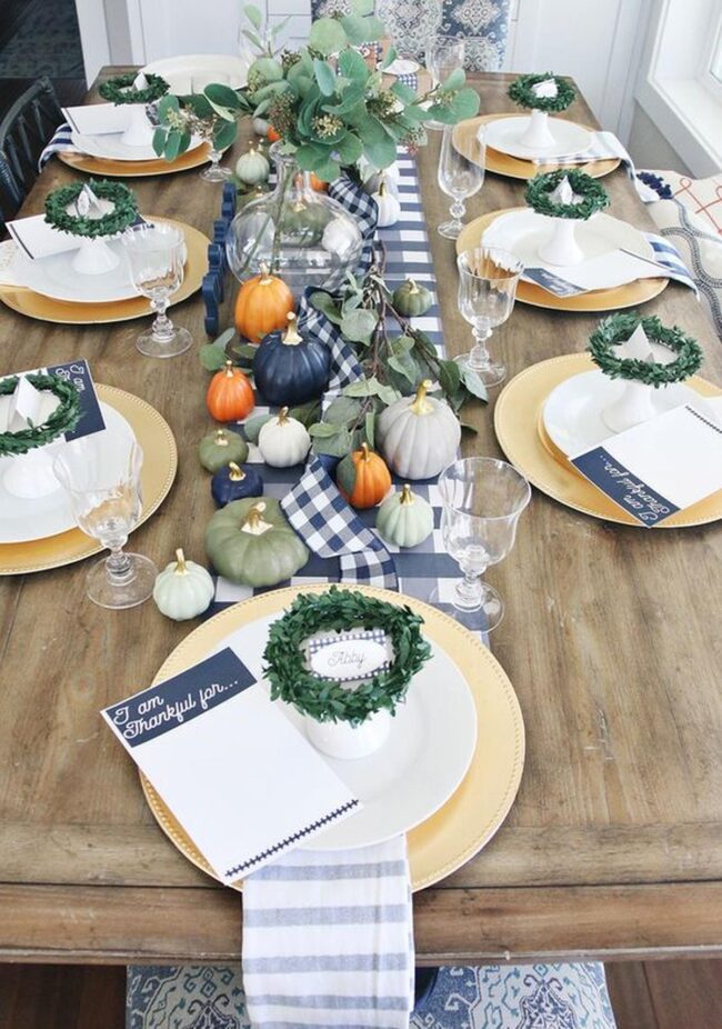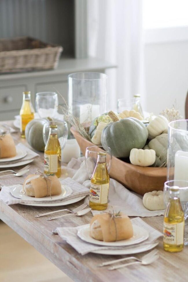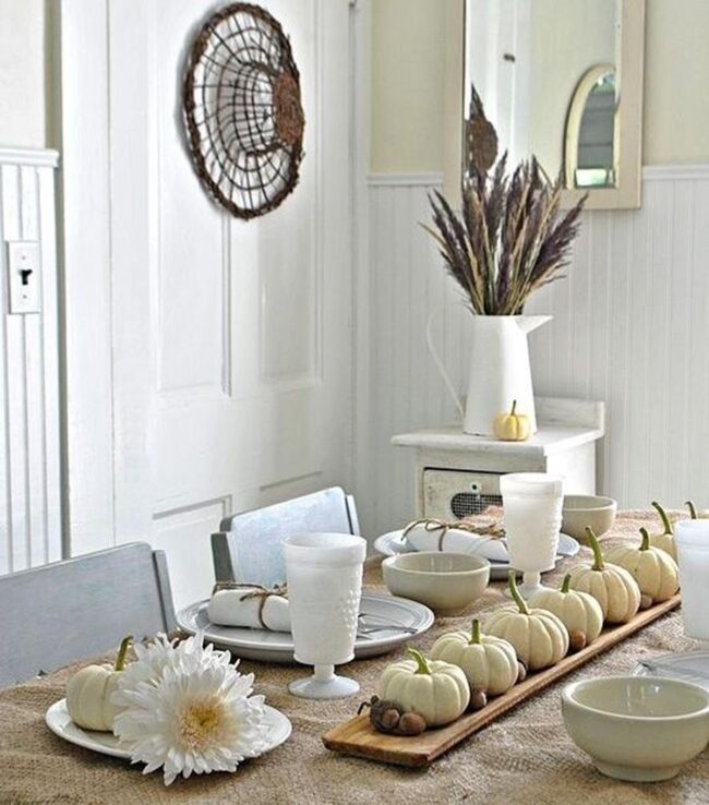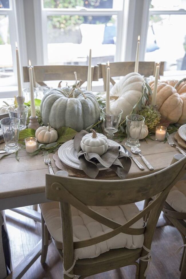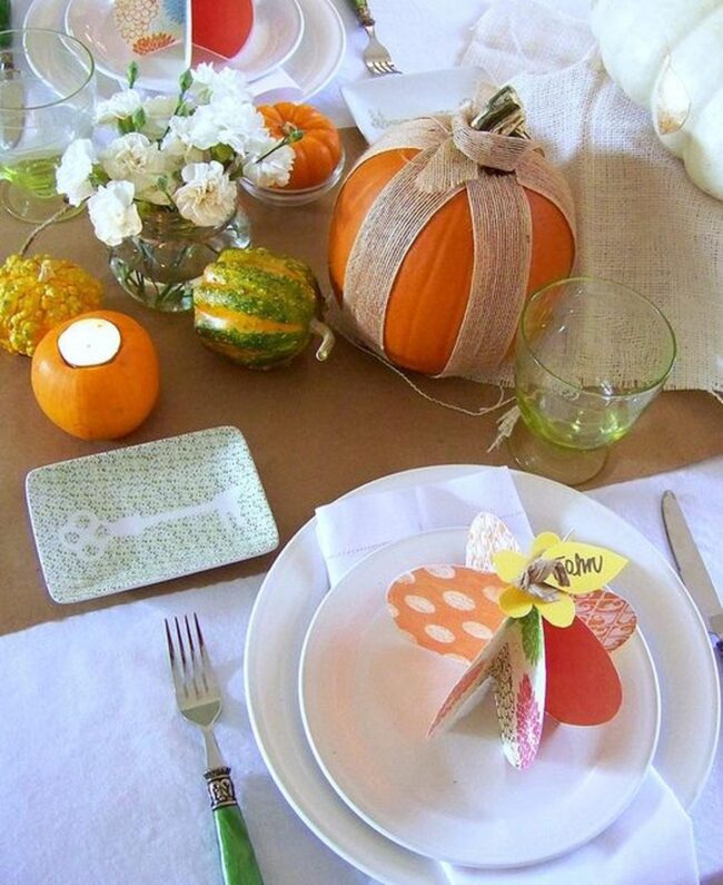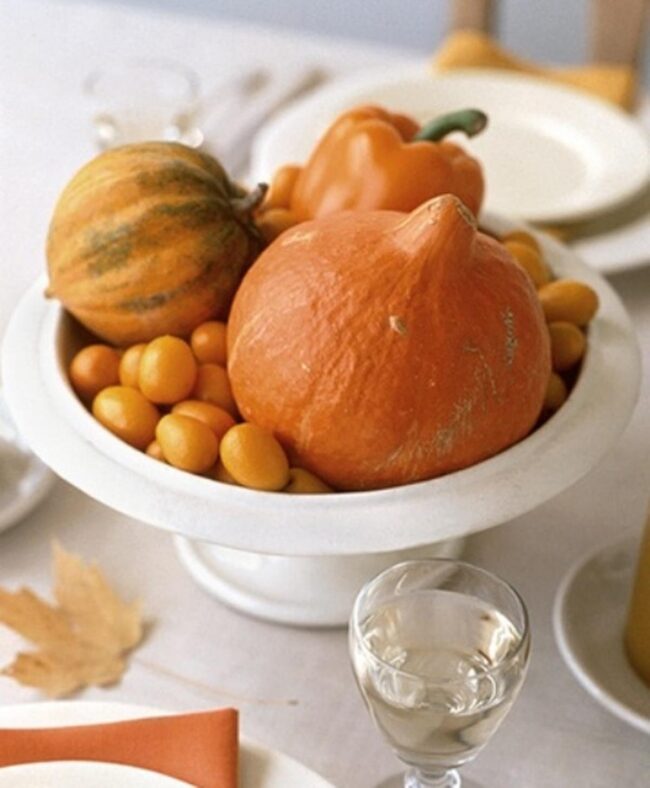 Pumpkins in soft orange, white, and green instantly modernize your dining scene into an autumn paradise.