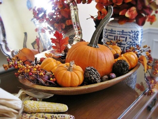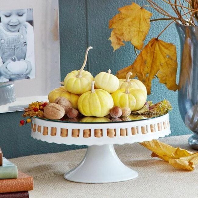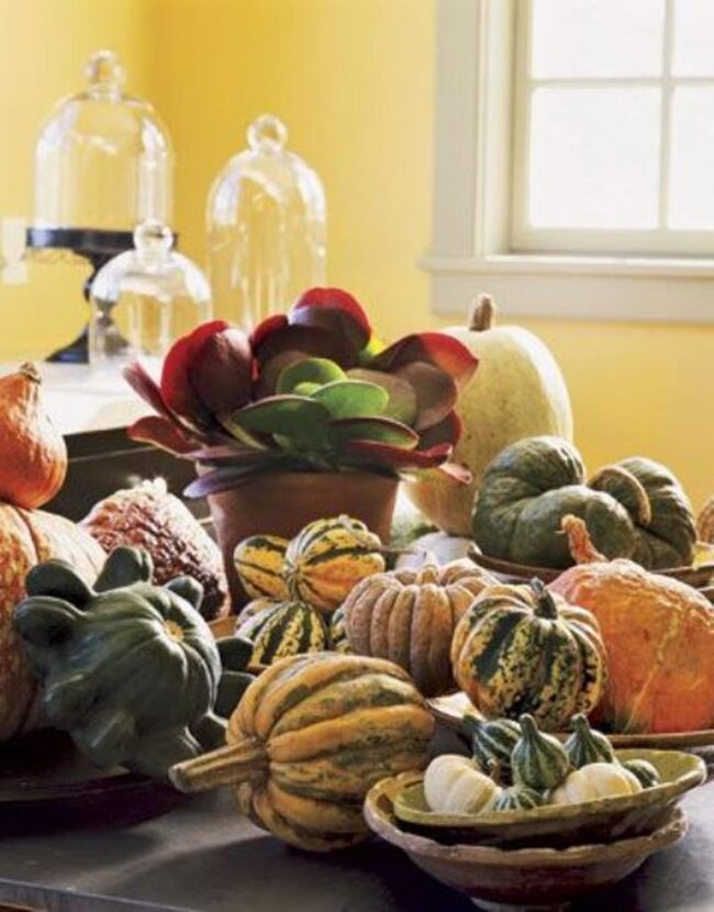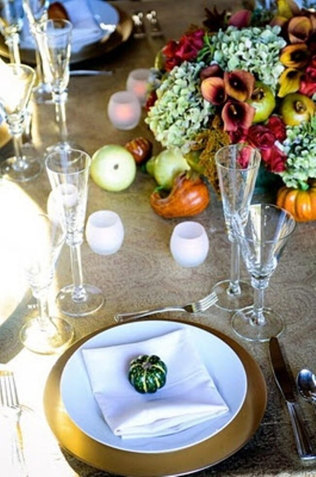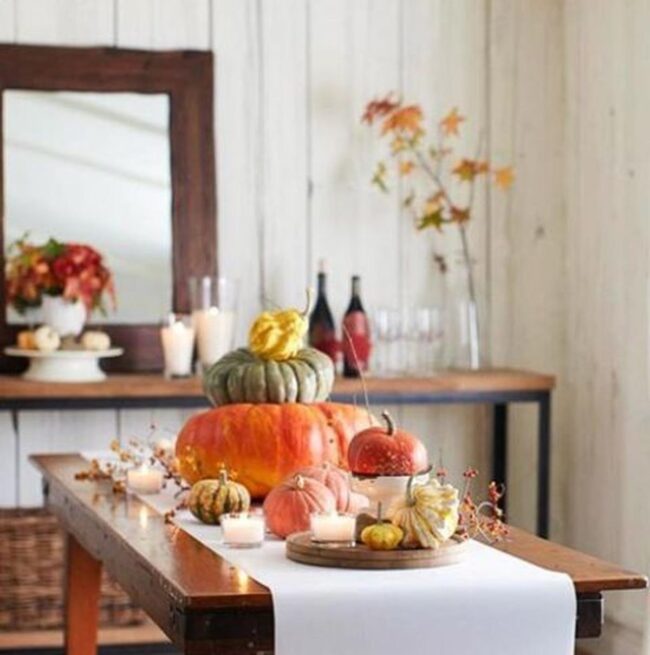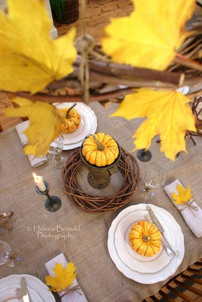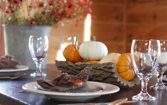 Pumpkins in soft orange, white, and green instantly modernize your dining scene into an autumn paradise.