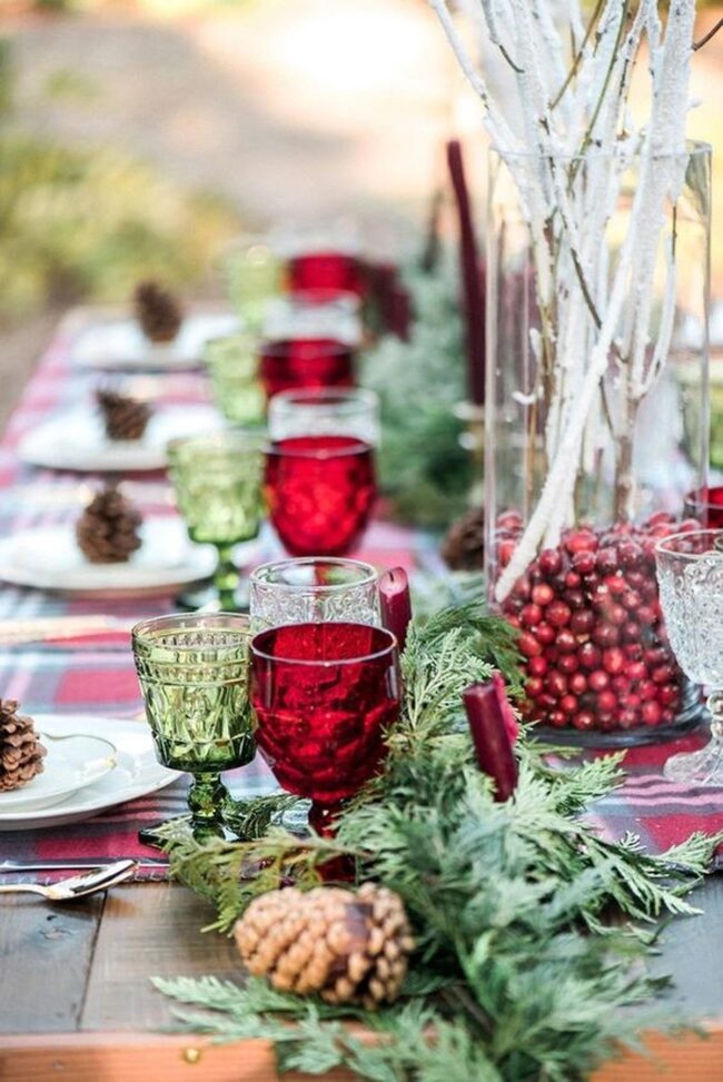 Pine branches scattered alongside crimson berries create instant woodland charm that draws eyes across your dining space.