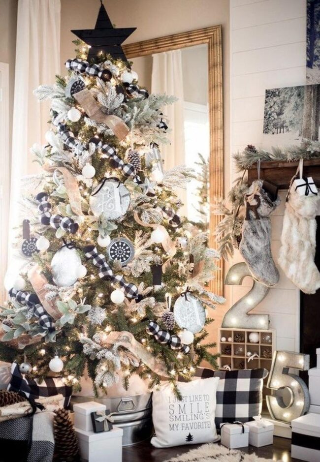 Plaid-wrapped packages tucked underneath add delightful personality and surprising charm to your festive scene.