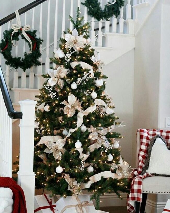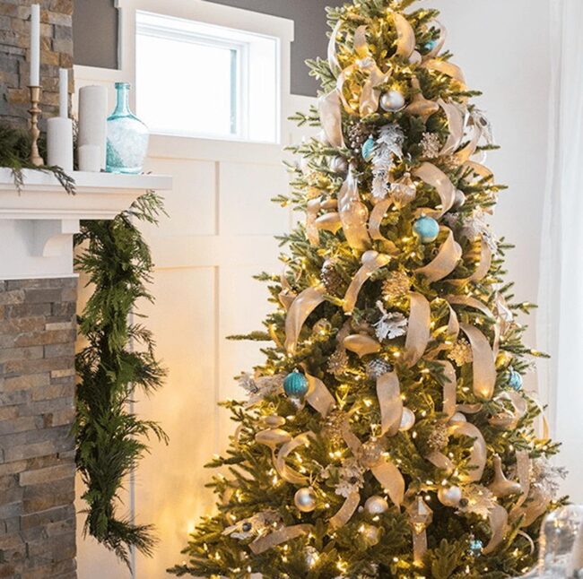 Sparkling Christmas trees become stunning centerpieces draped in dazzling lights and shimmering ribbons that catch every eye.