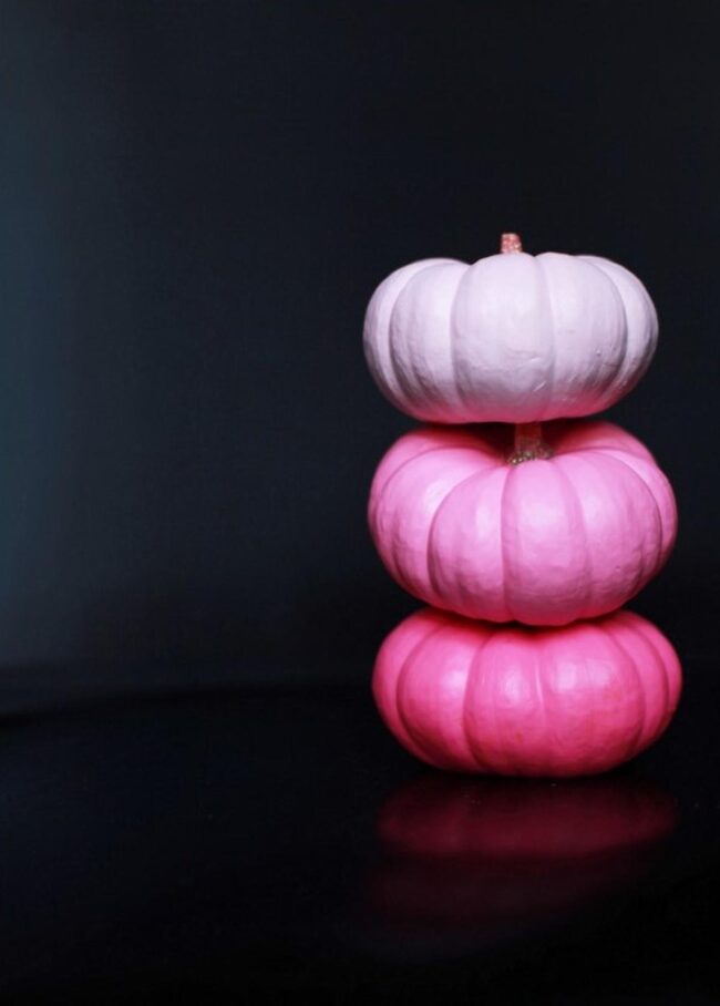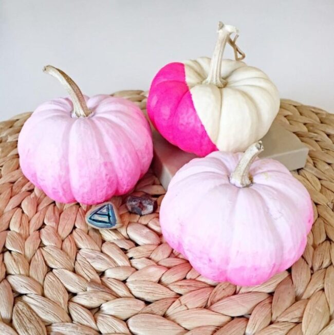 Soft pink gradients and hot-pink accents adjust ordinary pumpkins into eye-catching autumn art pieces that instantly spark conversation.