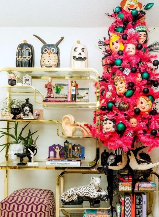 Wild decorating magic happens when you embrace unexpected combinations that spark joy and conversation! Vintage masks dance alongside playful ornaments on an eye-catching tree, making standard decor feel completely boring by comparison.