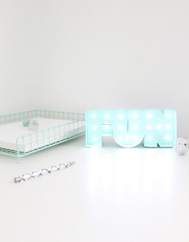 Quirky details like glowing letters spelling "FUN" inject personality and spark excitement for your next brilliant idea.