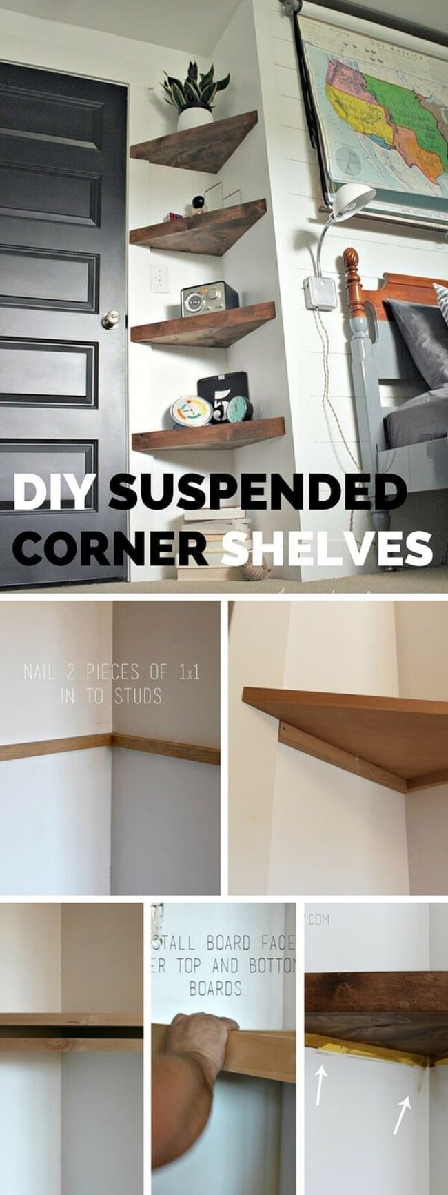 Maximize bedroom potential with DIY floating corner shelves that instantly elevate your space's aesthetic and functionality.