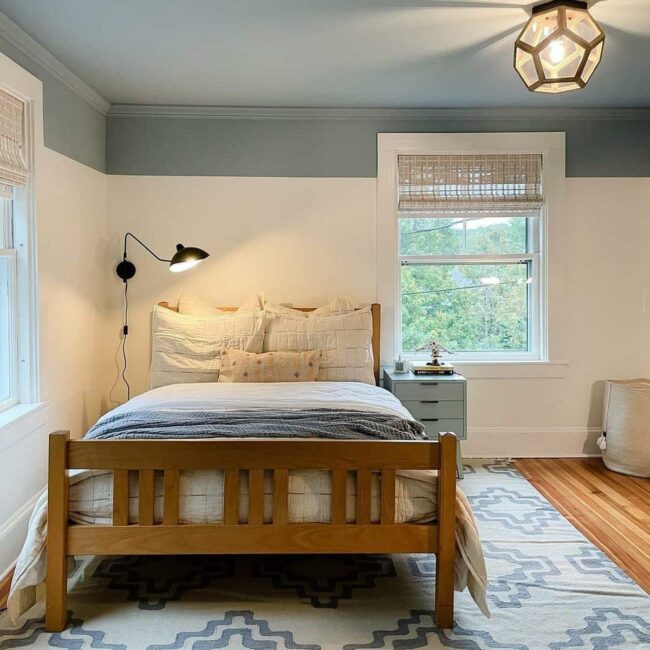 Blue ceiling hues instantly elevate bedroom tranquility with their soothing presence.