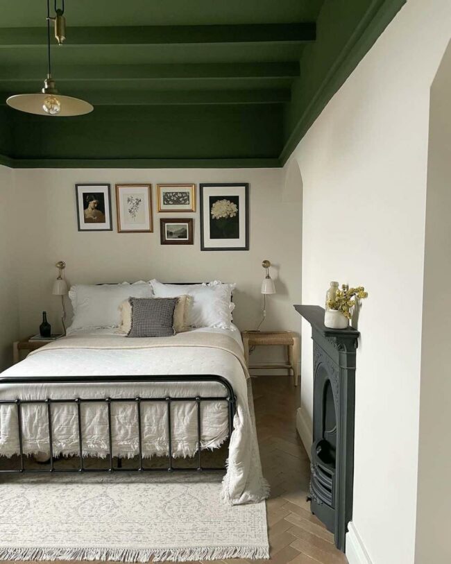 Midcentury modern bedrooms capture attention with a dramatic dark green ceiling that instantly elevates the entire space, adding unexpected depth and character.