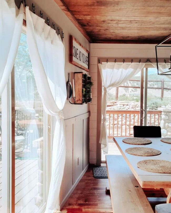 Wood plank ceilings radiate rustic warmth in dining spaces, capturing farmhouse charm with authentic appeal.