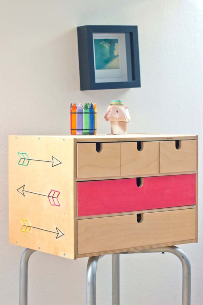 Plywood scraps become artistic canvases for expressing unique design sensibilities through carefully measured and constructed drawer panels.