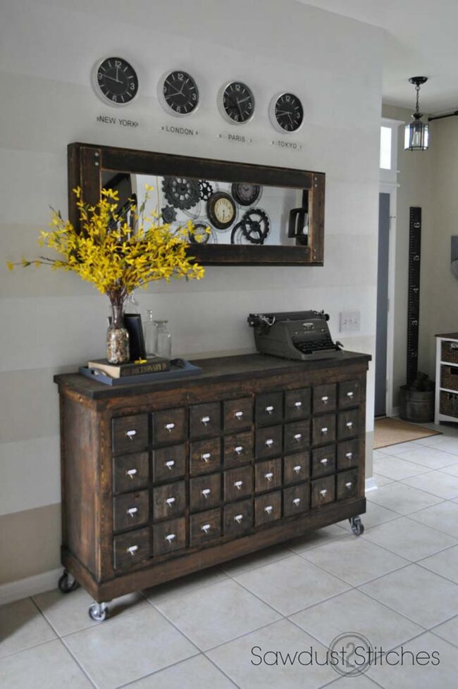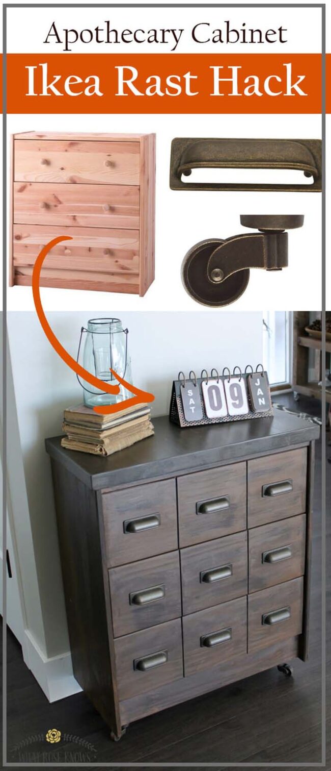 Skilled DIY enthusiasts can transform this basic wooden piece by strategically modifying its structure to resemble classic apothecary chests.