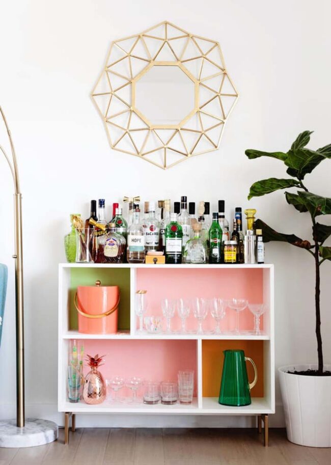 Ikea cubbie shelves make incredible apothecary sideboards with minimal effort and maximum style.