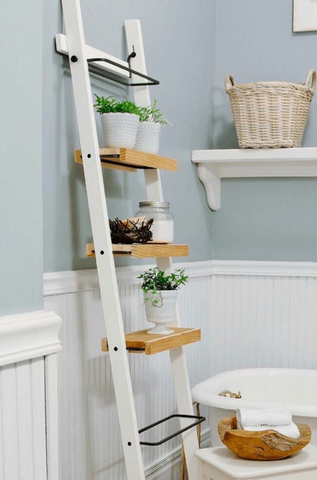 Crafters can personalize their ladder by selecting wood stains or paint colors that complement existing bathroom decor.