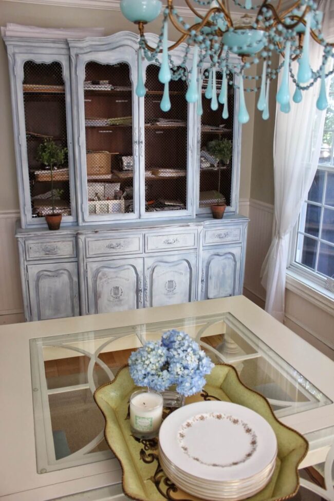 Muted colors like pale blue and creamy white capture the French countryside, creating a welcoming space that feels instantly comfortable.