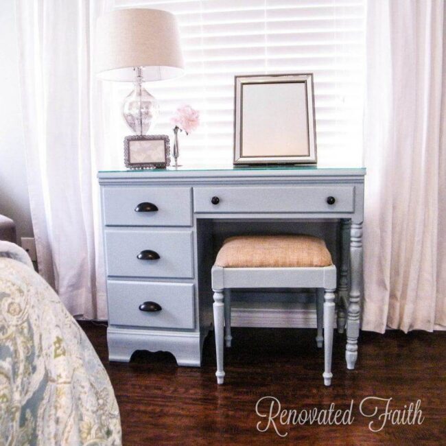 Painting the piece in complementary gray and white tones creates an instant farmhouse-chic vibe that feels modern and welcoming.