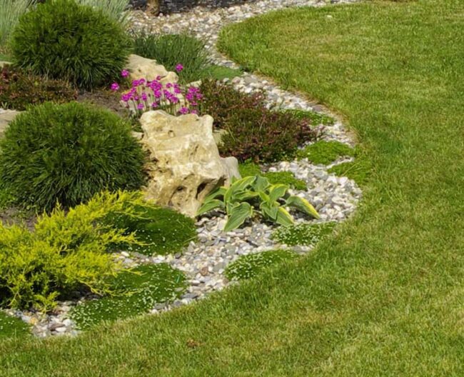 Rock walls and carefully positioned stones provide a rugged aesthetic that transforms mundane yards into captivating environments.