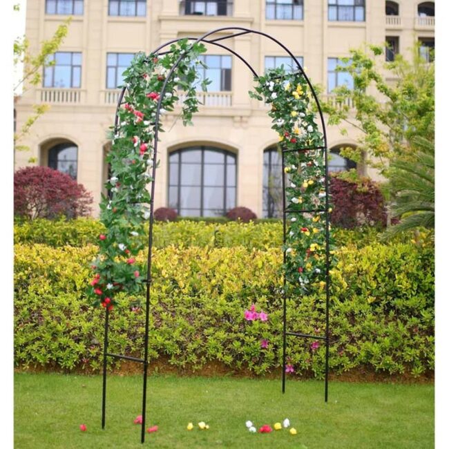Wooden or metal support structures provide sturdy foundations for delicate blooms to weave intricate patterns.