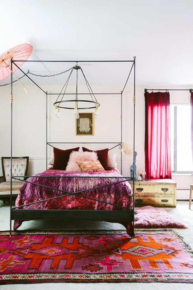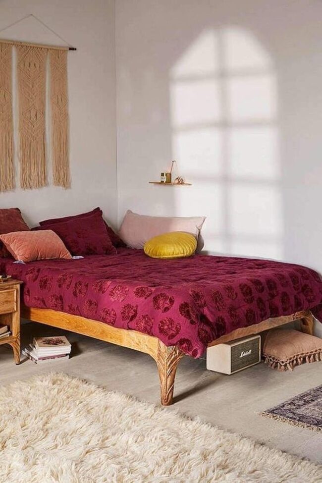 Bedroom spaces burst with personality when red and pink bedding catches your eye, instantly drawing you into a cozy corner filled with charm.