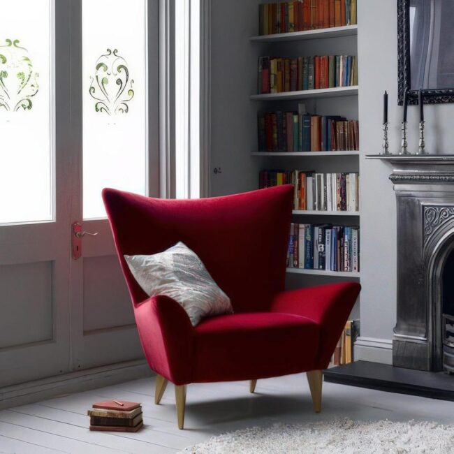 Discover your dream reading nook with a vibrant red armchair that instantly catches every eye and beckons you to dive into your favorite story.