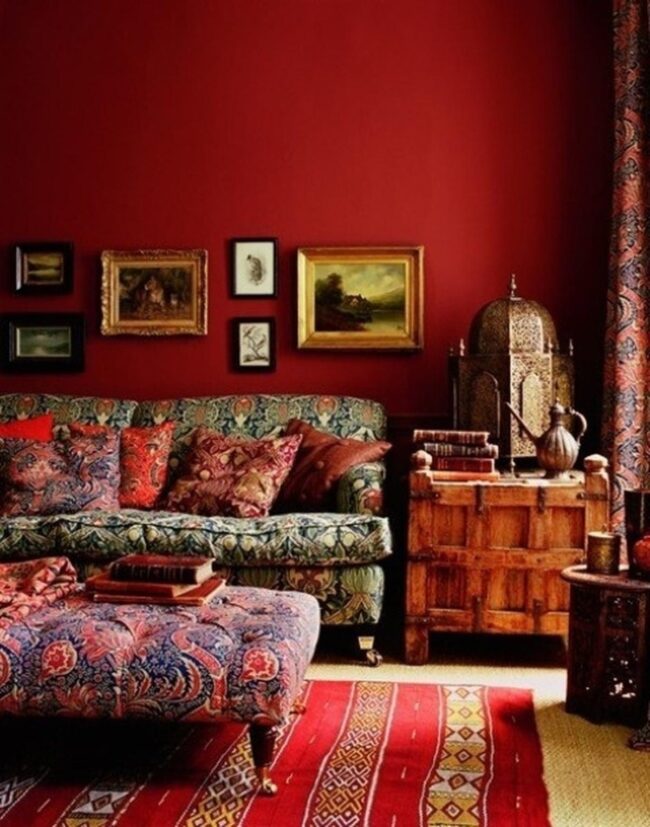 Wall colors can dramatically set your room's mood, like deep red hues that instantly wrap spaces with passionate energy and sophistication.