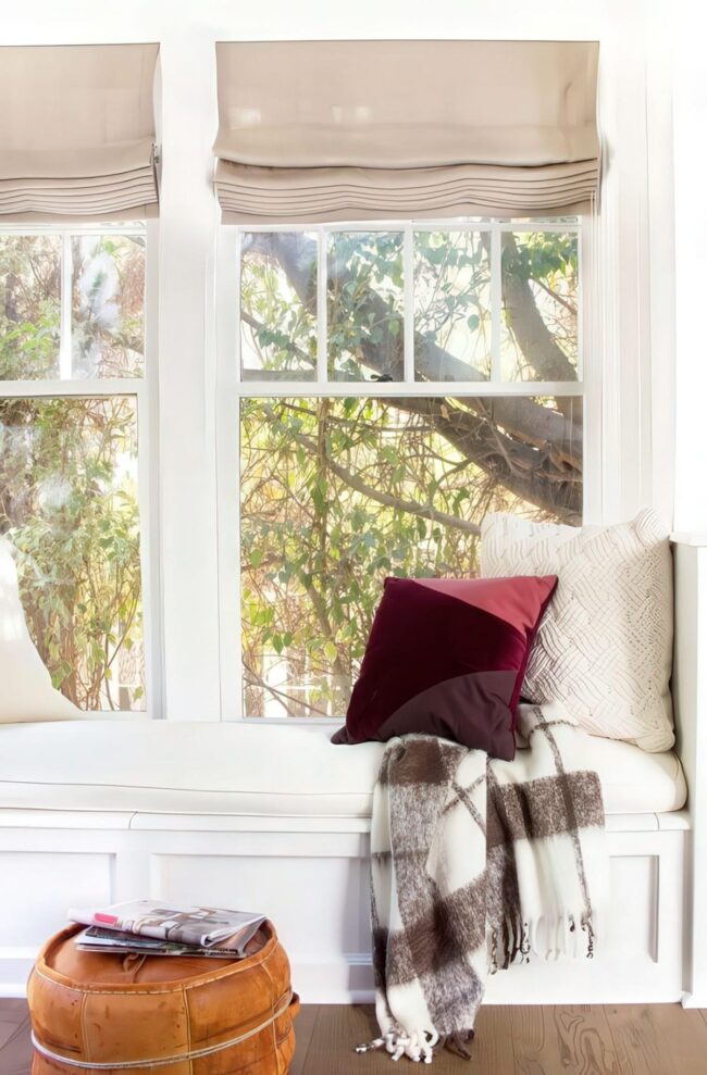 Cream and burgundy cushions promise comfort, encouraging relaxation during quiet afternoon breaks.