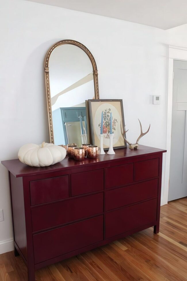 Vibrant red dressers make magic happen in rooms, instantly drawing eyes with their bold statement against pristine white walls.