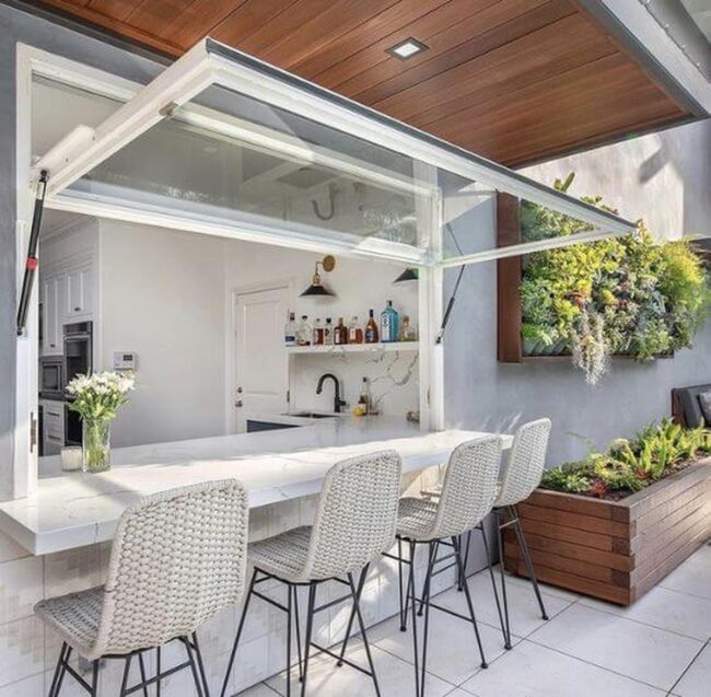 Outdoor bars create magic by blending indoor comfort with exterior scenery, letting you enjoy refreshing drinks beside open windows.