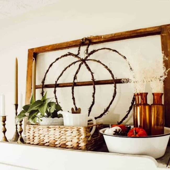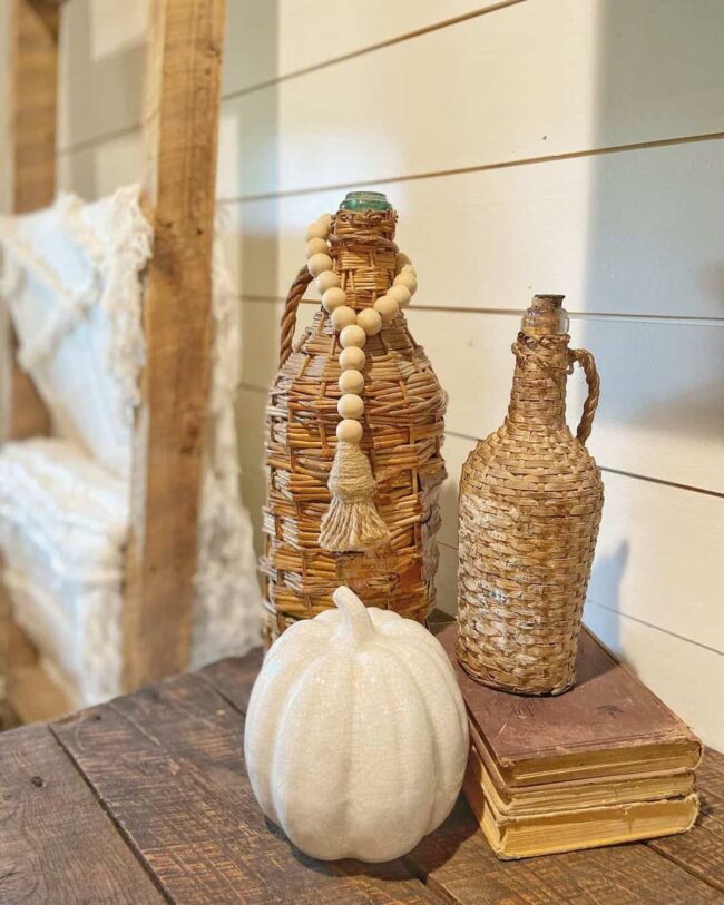 Ceramic accents like pumpkins complement these woven elements, creating a delightful artistic harmony.