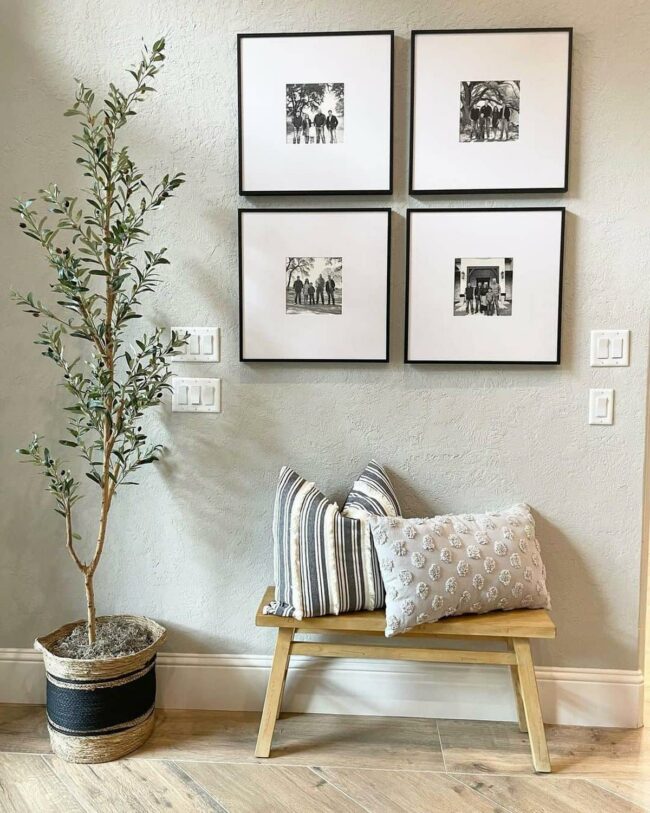 Neutral tones create a calming backdrop for cherished memories and decorative accents.