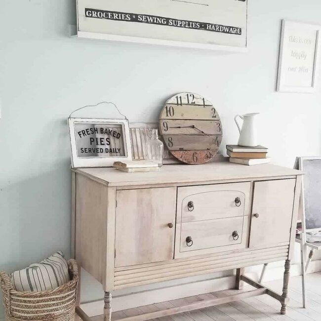 Refinished bleached wooden hutches elevate room aesthetics with their elegant, airy feel.