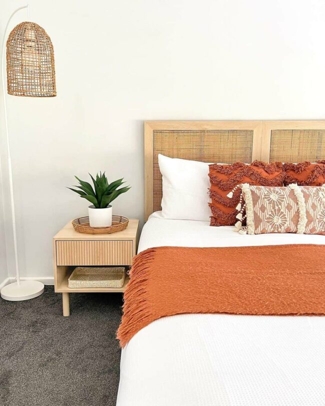Delicate rattan pieces whisper comfort and earthiness throughout the room.