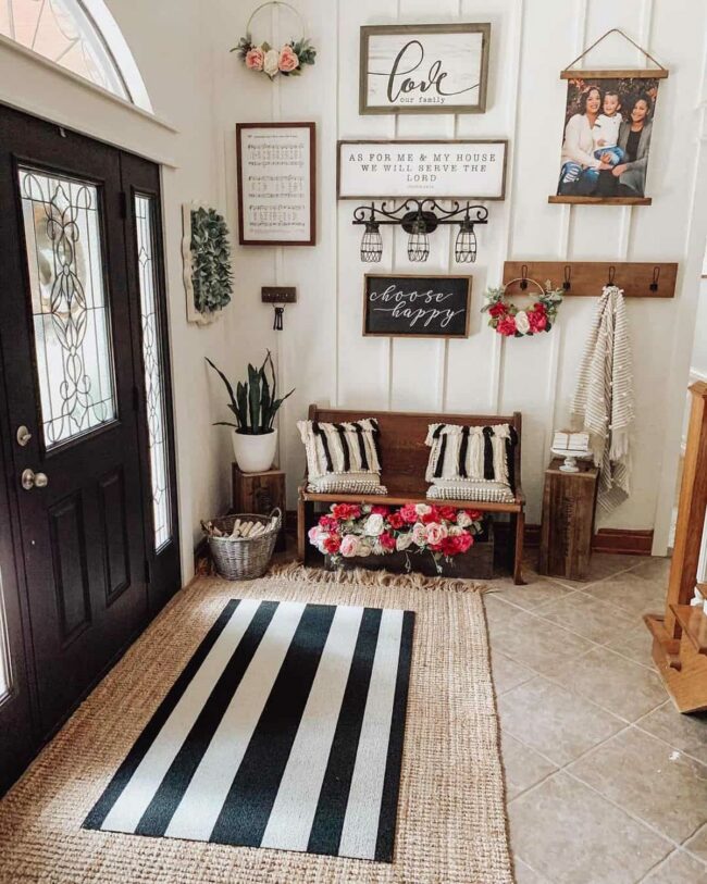 Stepping into this entryway feels like a warm embrace from a charming farmhouse sanctuary.
