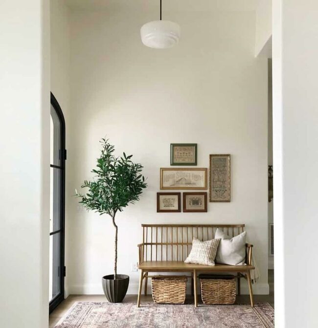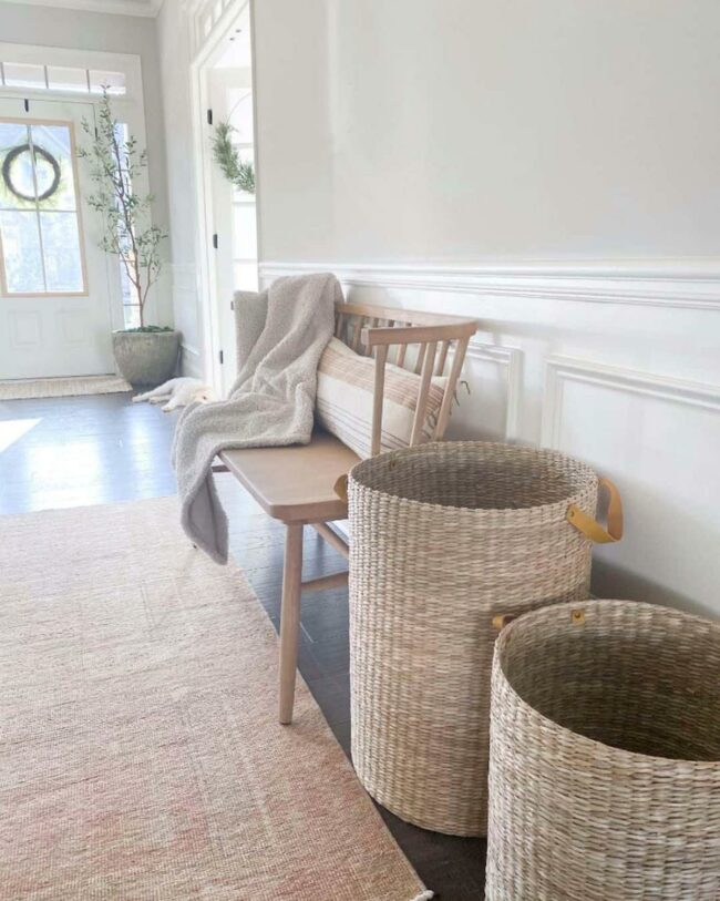 Soft neutrals and natural materials work together to transform the entry into a cozy sanctuary.