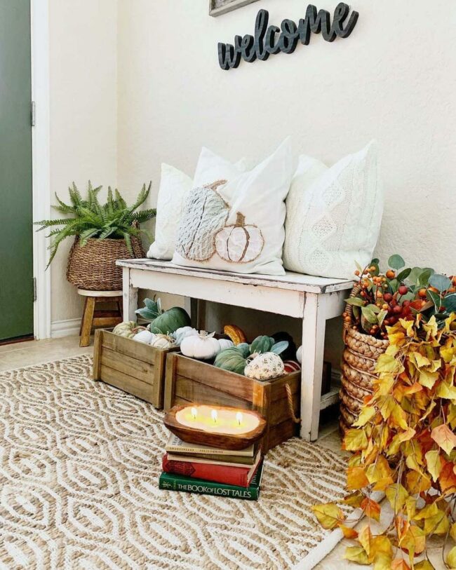 Seasonal decor transforms simple spaces into delightful welcome zones.