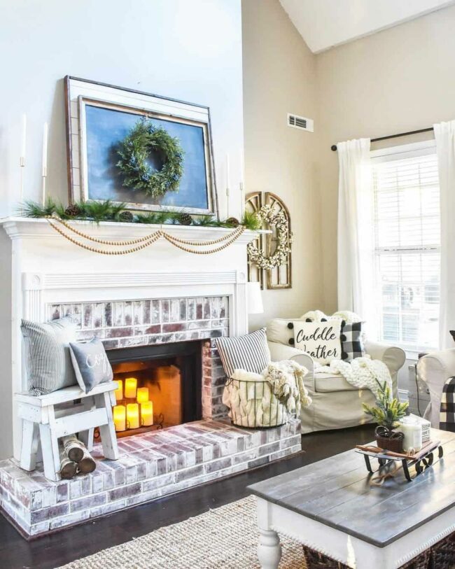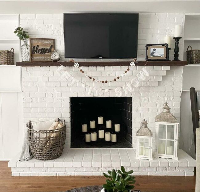 White brick fireplace brings instant charm and elegance to any living room, making it the heart of home design.