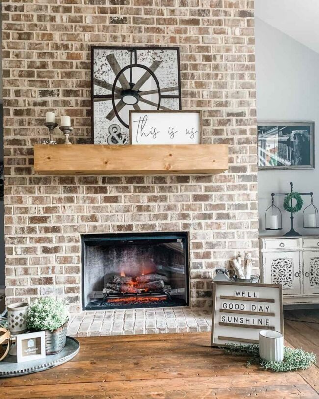 Rustic brick fireplaces instantly capture attention with their raw, natural charm and warmth-radiating presence.