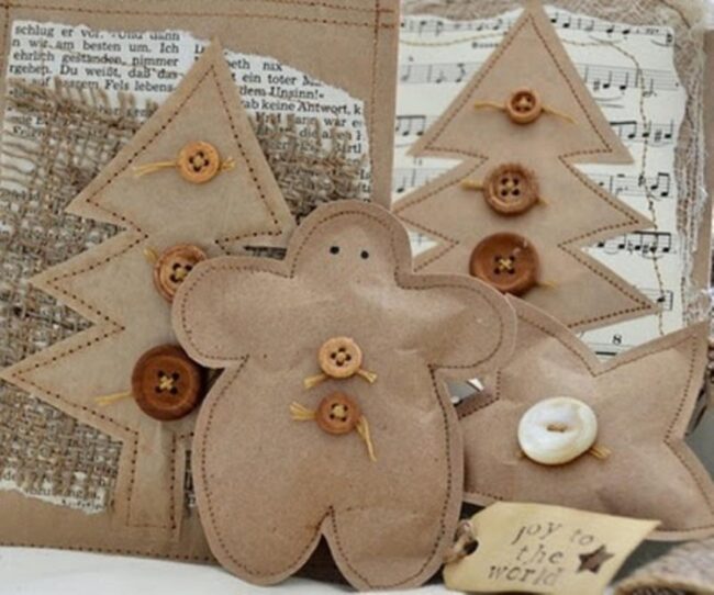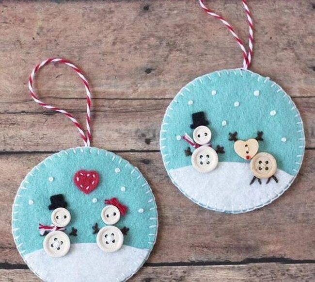 Carefully placed buttons showcase the ornaments' unique character, setting them apart from mass-produced decorations.